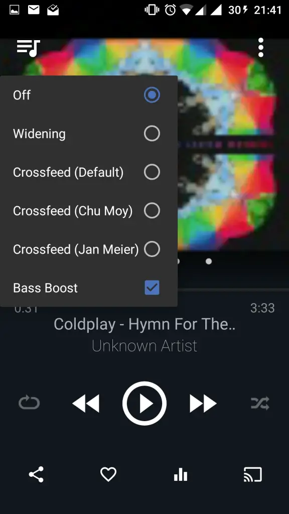 It’s true that sound quality mainly depends upon the phone and headphones, music player also play an important part in sound output quality. The sound quality is good in low range .The app struggles in high bass and even extra bass headphones had a problem in high bass range when using the app. The 10 band equalizer does its job but I found that the music output is better with the equalizer turned off. The Supersound features is a different story though. The bass booster makes you forget the let down of the equalizer. I found no real use of the other supersound features but if you are someone who likes widening or cross fade effect then you will definitely love this feature.
