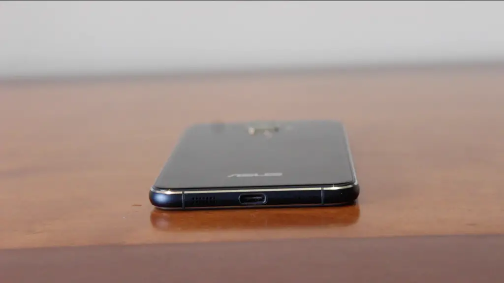 Taking a look at the edges, the headphone jack and the secondary noise-cancelling microphone can be located on the top of the phone, while the USB-C fast charging enabled port, and the primary mic can be located at the bottom edge of the phone. As usual, the power button and the volume rockers with the signature Asus texture can be found on the right edge, with a hybrid sim slot located on the opposite side.