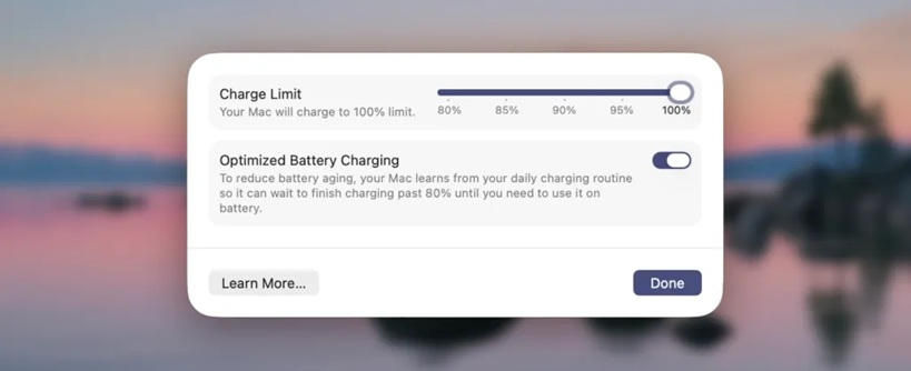 - Now, you will be able to set ‘Charge Limit’ using the slider from 80%, 85%, and so on, to 100%. Finally, hit the ‘Done’ button to save the settings.