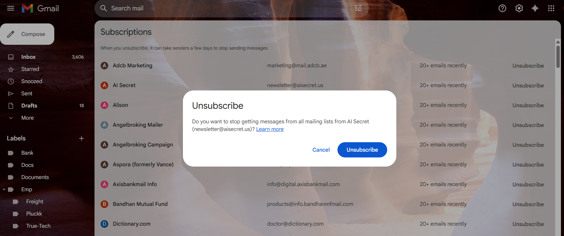 Step #3: Now you have a list of all the email newsletters you have signed up for, whether willingly or accidentally.