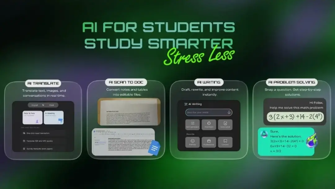 For students, the system includes tools for translation, document scanning, writing help, and problem solving. Media features such as YouTube video summaries and a battery-saving mode for streaming are also included.