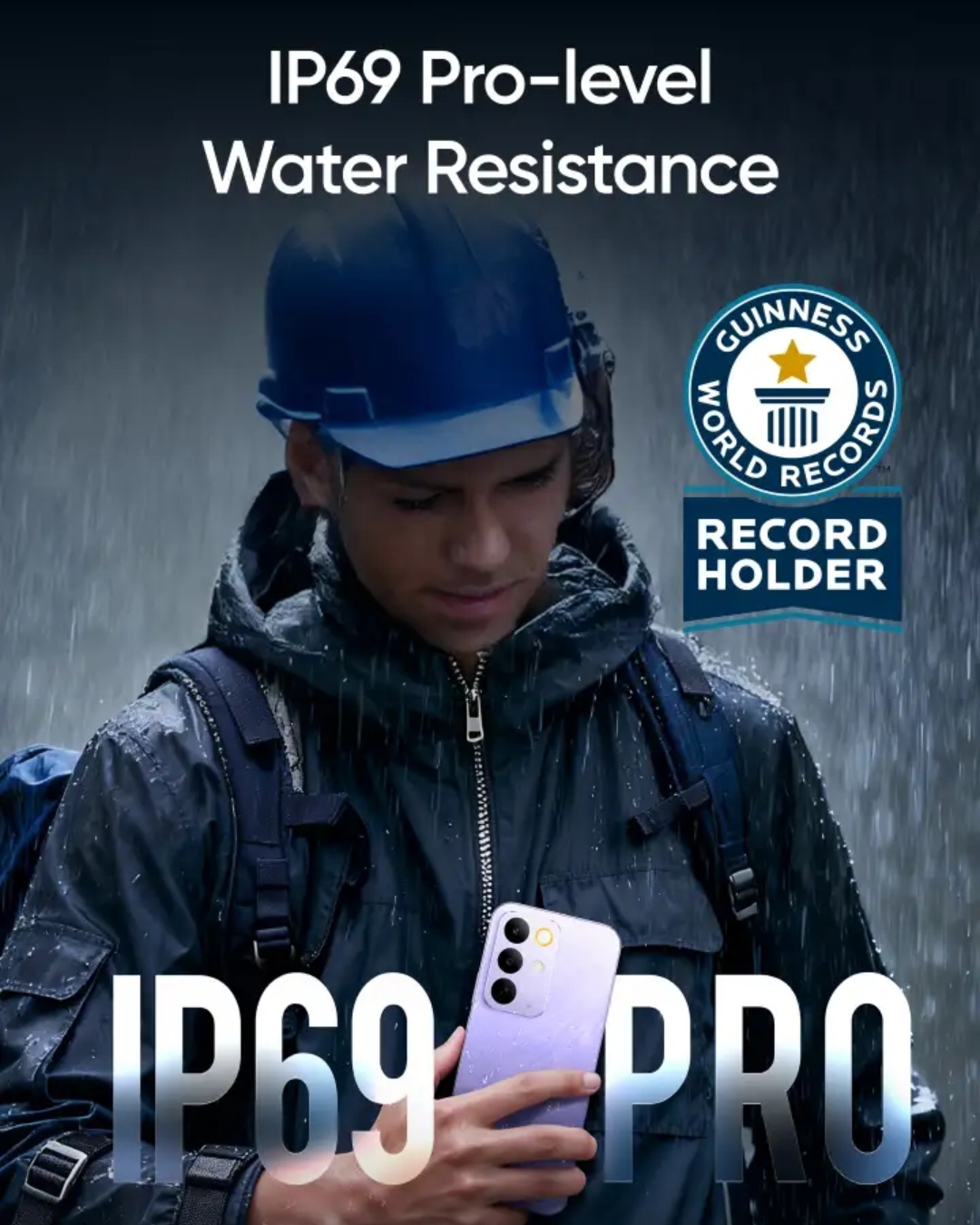 The realme C85 5G stands out for its rugged build. realme has confirmed that the device will come with an IP69 Pro rating to offer resistance against dust, high-pressure water jets, and protection against 36 different types of liquids.