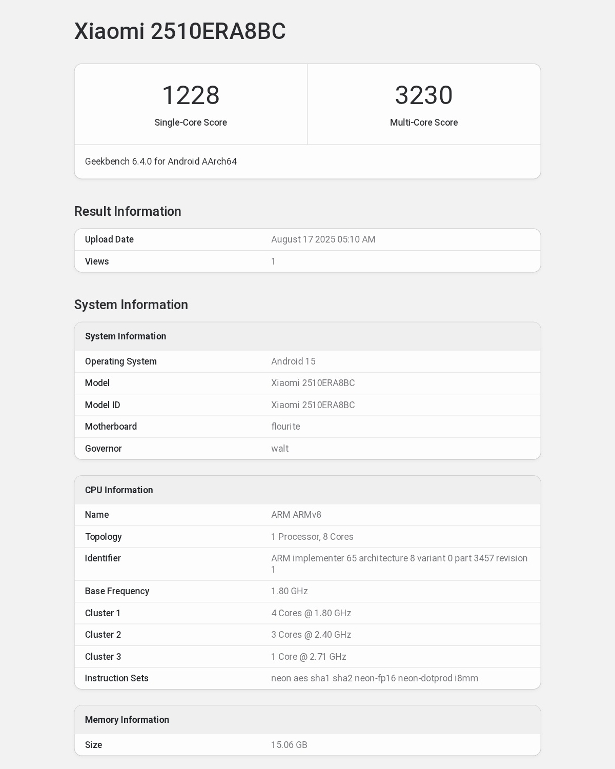 A Xiaomi smartphone with the model number 2510ERA8BC, believed to be the REDMI Note 15 Pro+, recently appeared on the Geekbench 6 benchmark listing. The device is reportedly powered by Qualcomm’s upcoming Snapdragon 7s Gen 4 chipset, an upgrade over the Snapdragon 7s Gen 3 found in the previous generation.