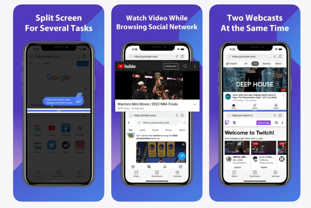 Split Screen lets you browse multiple web pages of Safari or Chrome browsers with ease. It works in both portrait and landscape mode while eliminating the need to juggle between the two apps and the stress that comes with it. Isn’t it fun?