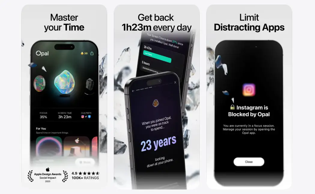 With Opal, you put a concessional block on these apps to only function at a certain time of the day or completely block them on others. Think about no Instagram from 10 am to 12 pm, the peak focus time for your work. With Opal, you get better screen time control, reduce stress, and block apps that may not go with your screen time plans. It is an app to detox from social media, which is by far one of the major contributors to your screen time.