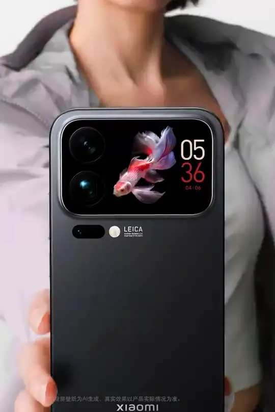 Xiaomi has teased a new Magic Back Screen feature on its Pro models. This rectangular screen replaces the camera island and surrounds the lenses. It can be customized with clock faces, GIFs, and avatars. The screen also acts as a selfie viewfinder, a smart home control panel, and a hub for quick actions.