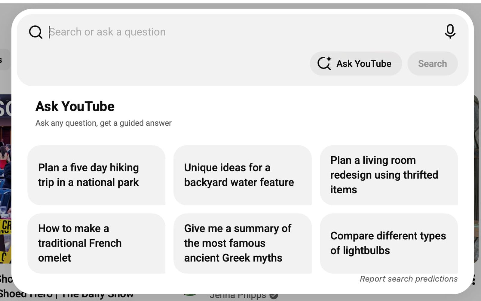 - The YouTube AI search feature lets users ask detailed questions and get conversational, AI-powered results.